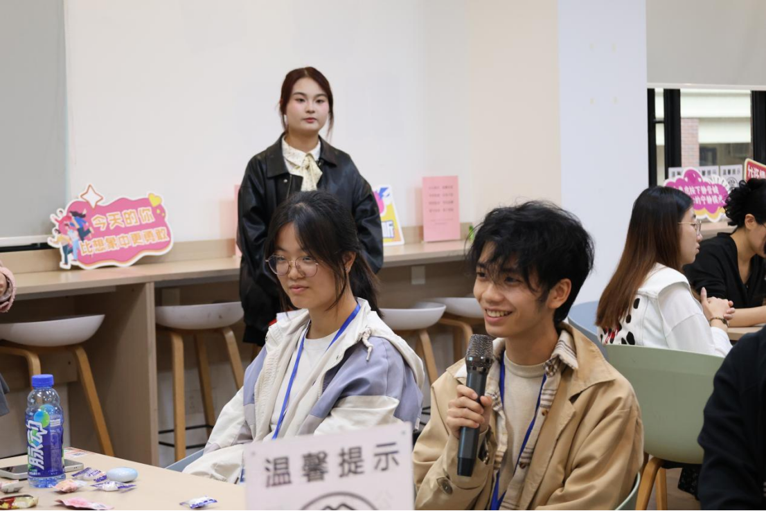 2025年11月6日14:30—16:00,新闻传播学院联合“一站式”学生社区中心、心理健康教育与咨询中心,于“一站式”学生社区北56公共空间二楼成功举办“对影·晤语·同行”朋辈互助心理沙龙。校心理健康教育与咨询中心齐孟翰老师、一站式社区冯莉老师、新闻传播学院心理心理协会指导老师马丹妮老师应邀出席,新闻传播学院心理协会成员及2025级全体心理委员共同参与了这场以“心灵联结、赋能成长”为核心的互动体验活动。