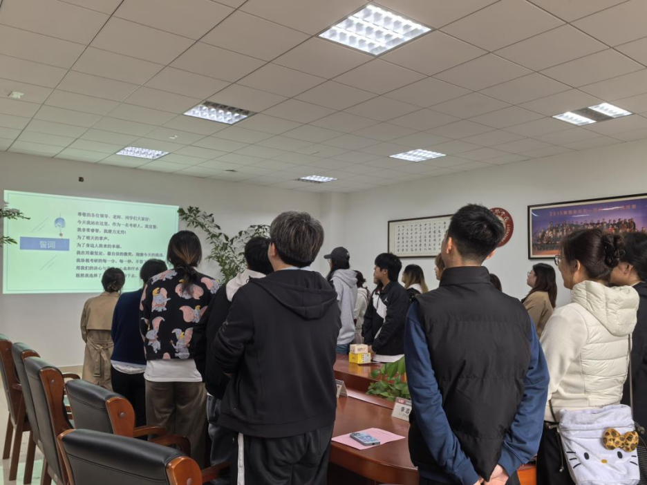 接着,由考研代表带领同学们进行宣誓:“用决心与意志、心血与汗水奏响成功的凯歌,不留下任何遗憾。”宣誓气势昂扬,振奋人心。