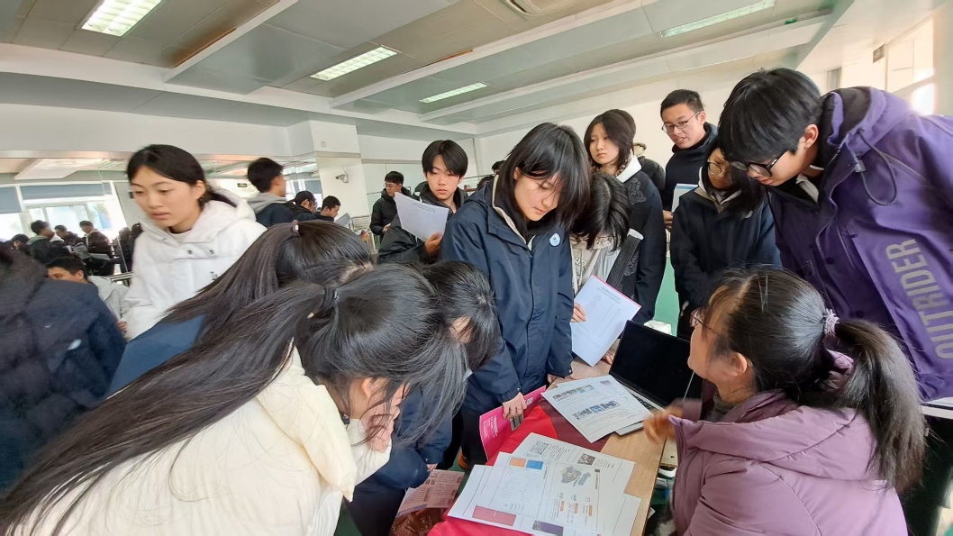23日下午2点,新闻系系主任曹茶香、辅导员田红玲一行来到宝山区高境一中。曹茶香以“区位+产业+育人”三张名片为主线,系统介绍建桥基本情况及发展趋势,并对春招计划、奖助体系、转专业政策等进行重点讲解。随后,咨询区很快被学生围得水泄不通,老师们也通过建立社群的形式,为学生、家长提供持续的答疑和指导。