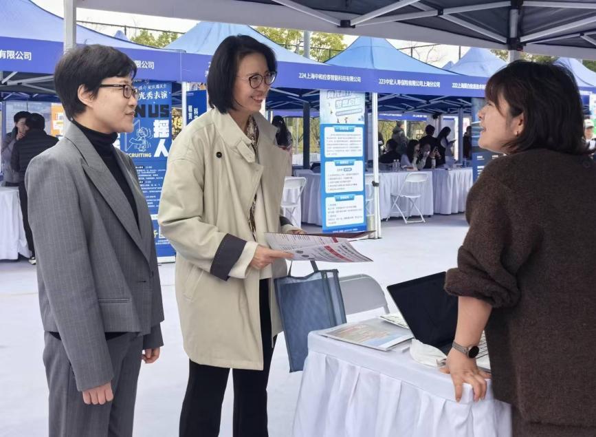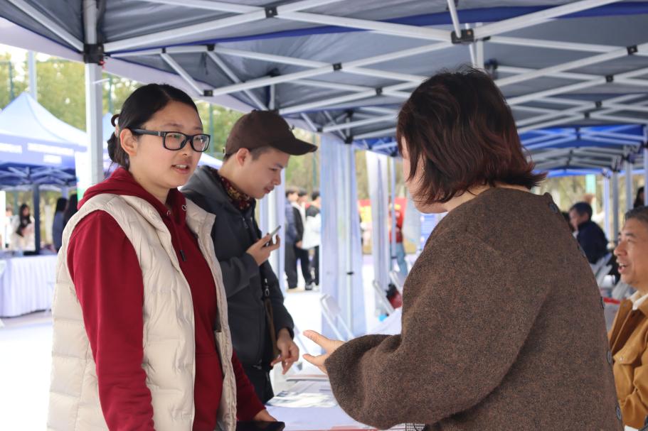 在招聘会现场,院长徐磊及院党委书记伊莉重点走访了契合新闻传播类专业岗位需求的企业,与HR进行深入探讨,希望学校与用人单位加强联系,进一步开展校企合作,提前为企业做好输送人才的准备,也为毕业生搭建实践平台。同时,勉励学生们为自己的未来做好规划,保持良好的就业心态。
