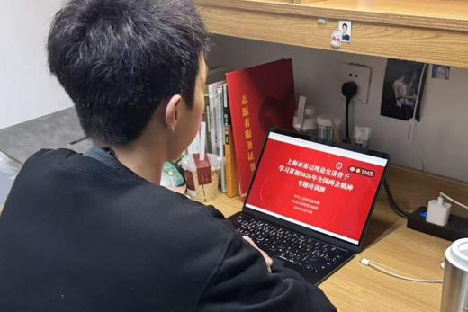 为深入学习贯彻习近平新时代中国特色社会主义思想,全面落实 2026 年全国两会精神,切实提升党员干部的政治素养、理论水平与宣讲能力,3月19日,新闻传播学院全体师生党员同步收看上海市基层理论宣讲骨干学习贯彻2026年全国两会精神线上专题培训,培训上午、下午场次分别从政治内涵与经济视角,对两会精神及“十五五”规划展开全方位、深层次解读。