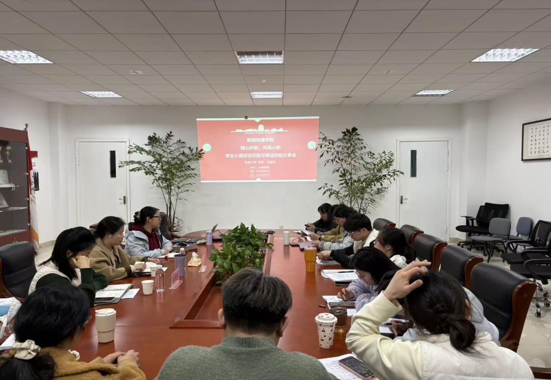 2026年3月31日下午,新闻传播学院在学院楼219会议室召开新学期学生心理状态识别与调适经验分享会,特邀信息技术学院李苗老师、外国与国际教育学院李康丽老师主讲,学院党委副书记吴成皓及全体辅导员参会。