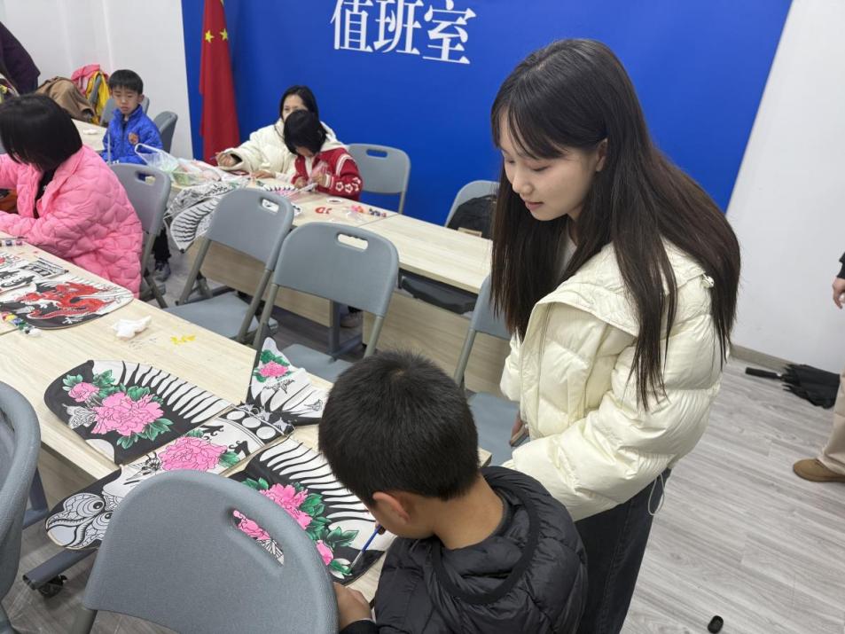 活动伊始,党建中心的同学们以简洁明了的方式,向现场小朋友们系统讲解了纸鸢的制作流程。从骨架搭建、糊纸固定到装饰涂色,各环节步骤清晰、通俗易懂。讲解结束后,活动正式转入实践环节。大家分工明确、协同配合,与居委会工作人员紧密协作,耐心细致地指导小朋友们动手制作纸鸢。