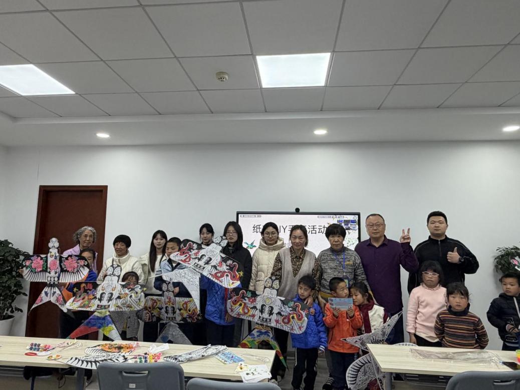 活动尾声,全体参与活动的同学、社区居委会工作人员、少年儿童及其家长共同合影留念,定格下这一温馨而富有意义的美好瞬间。此次纸鸢制作主题活动,既有效锻炼了少年儿童的动手实践能力,又切实增进了亲子间的情感联结,更让红色基因在潜移默化中得以传承赓续,进一步丰富和深化了党建引领社区共建的内涵与实效。