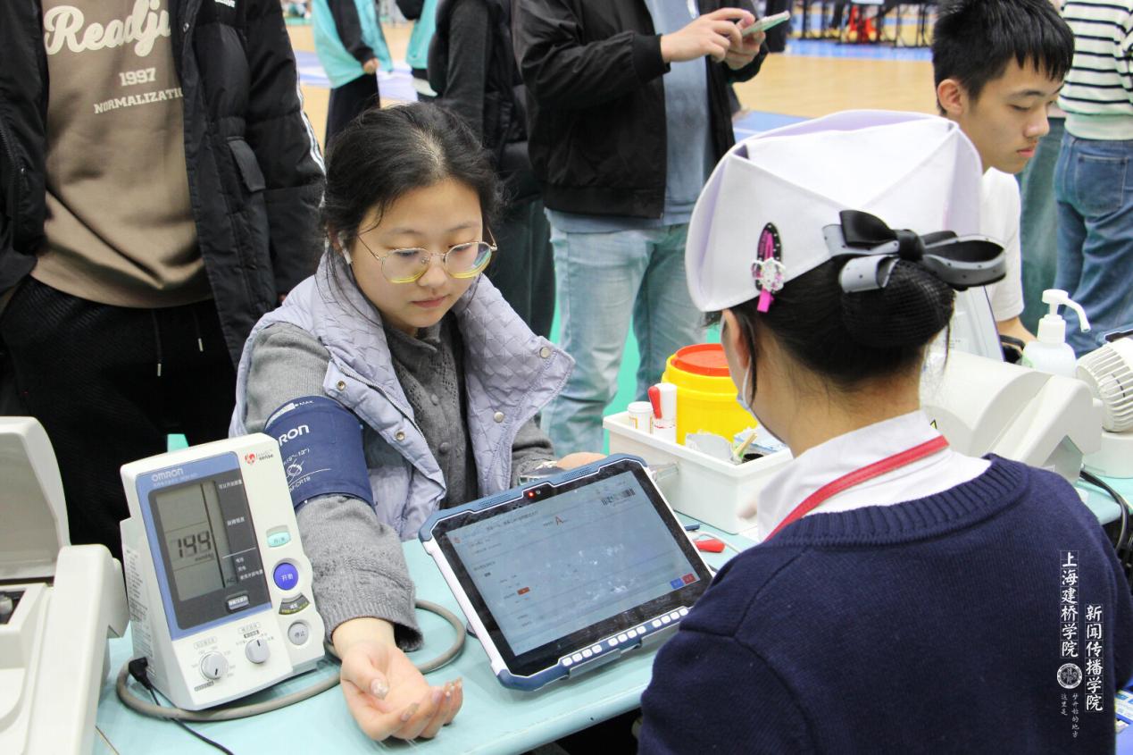 2026年4月9日下午,上海建桥学院新闻传播学院无偿献血活动在体育馆二楼顺利举行。25名闻传学子踊跃参与,以青春热血践行责任担当,彰显时代青年的奉献风采。