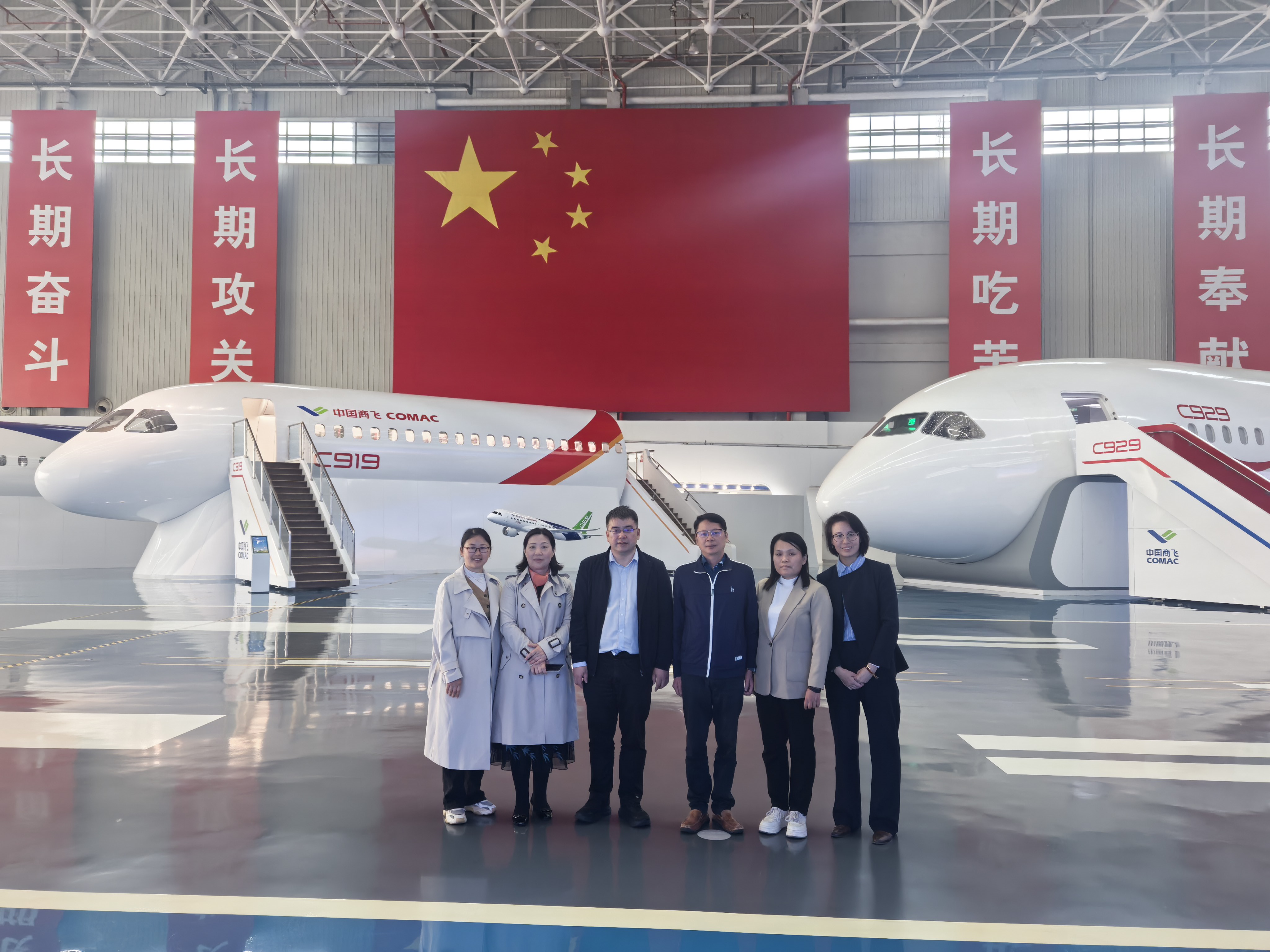 为深入贯彻落实访企拓岗专项行动要求,精准对接企业人才需求,深化校企协同育人机制,拓宽毕业生就业渠道,4月17日下午,上海建桥学院副校长王邦永带队,机电学院院长范丽、机械系系主任高桂革、新闻传播学院党委书记伊莉、党委副书记吴成皓一行,赴中国商飞上海飞机设计研究院(以下简称“上飞院”)走访交流。