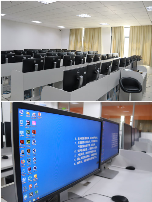 主要设备:标准化机房一个,60台工作站,Adobe系列多媒体软件。
